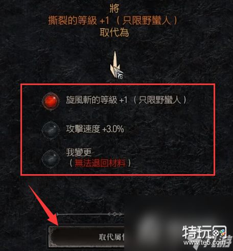 3、接着会出现该装备的3个属性,选择不需要的那个,也就是要洗掉的那个属性。