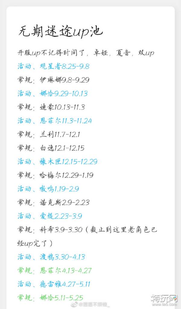 目前根据时间线推测下一次活动是5.25,下一个up池5.25,up池盲猜是观星者