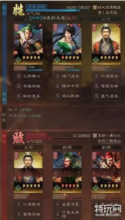 总结:目前的游戏主要还是根据区内的环境和对手的队伍来进行搭配,比如前期对手很多人玩渊骑的情况下,那么作为白板给上一个箕形阵可以明显提高胜率,如果渊骑不多的话,那么常规配置也是可以玩的!到了游戏中中期,如果藤甲盾变多了以后,给姜维带个火炽原燎也是可以的,针对不同的环境配置可以进行战法上的调整,这才是目前的三战!