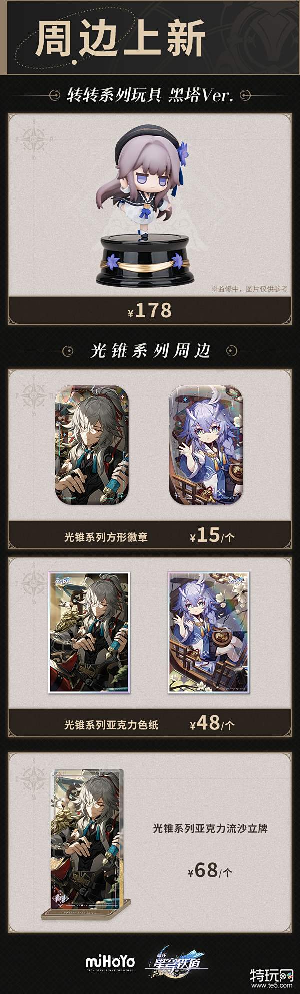 「角色立绘系列」立牌、徽章与挂件新增克拉拉、布洛妮娅、景元等多角色款,「光锥」系列徽章、亚克力色纸也将推出「拂晓之前」及「时节不居」款,在首轮发售的周边中备受开拓者喜爱的流沙摆件也特别带来了「拂晓之前」新款上架。