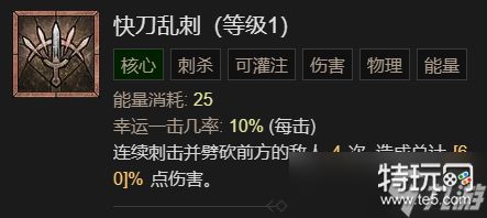 然后在使用4个技能点将核心技能快刀乱刺点满。