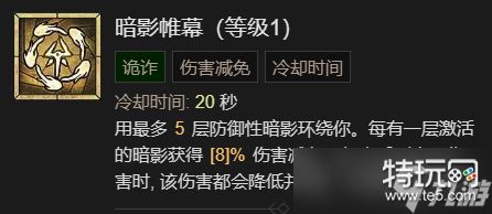 然后在使用3个技能点将将诡诈技能暗影帷幕给点出来,同时技能分支强化暗影帷幕和颠覆暗影帷幕也需要点出来。