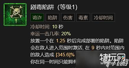 随后在使用2个技能点将诡诈技能剧毒陷阱点出来,同时技能分支强化剧毒陷阱也需要点出来。