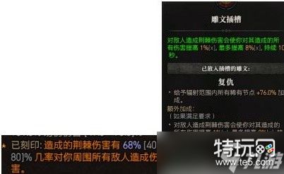 4.巅峰里的复仇,是触发一次荆棘伤害增幅1%,并对每个怪独立计算。但针刺暴突威能触发的范围伤害也算一次荆棘伤害,因此在一堆怪中能瞬间叠满8%,优秀的乘区增伤