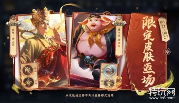 1、两个西游限定皮肤的返场,分别是猪八戒的猪悟能皮肤以及金蝉的唐三藏。