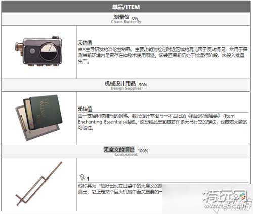 测量仪、机械设计用品、无意义的铜管。信任度达到一定程度就可以解锁与角色能力的相关物品。