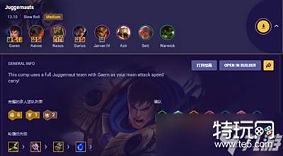 阵容分析:六大师可提供30%至50%的伤害减免,阵容强度很高,剑魔作为九级后补充到阵容中的棋子,增加阵容上限。