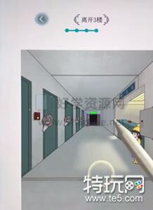 6、最后我们打开后面的门,点击进入发现在五楼,一直往前走到电梯里,点击二楼与医生谈话,把他口罩摘下点击他出现诊断书再点击他即可过关。