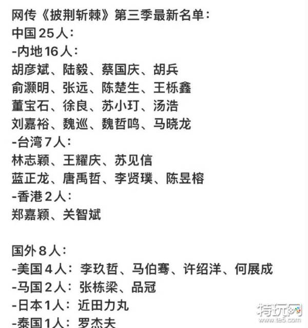 网传披荆斩棘第三季最新名单已经分享在上面,感兴趣的小伙伴可以参考本篇攻略,希望能为各位玩家们带来帮助,想要了解更多游戏攻略及资讯请持续关注特玩游戏。