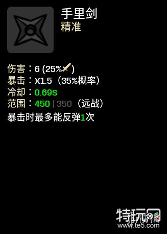 这样就可以帮助玩家在前期拥有很不错的强度,同时手里剑还可以再暴击的时候反弹一次。