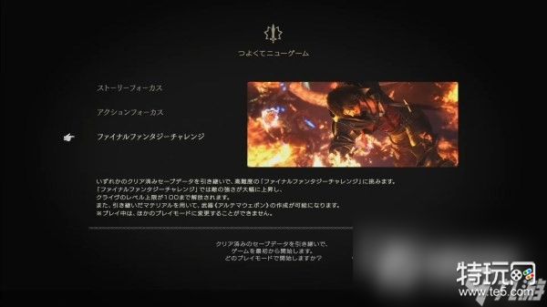 通关后,在标题界面会新增「New Game+」选项,能够继承已通关的存档中克莱夫的能力值,从头游玩游戏,可挑战高难度游玩模式。