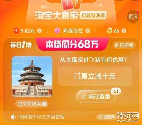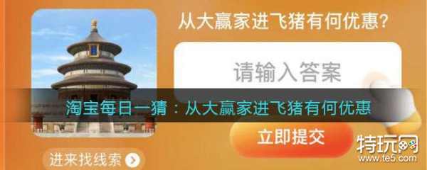 以上就是特玩小编整理带来的淘宝每日一猜从大赢家进飞猪有何优惠,淘宝每日一猜6月28日答案,更多精彩内容,请点击关注特玩网,小编将持续为您更新!