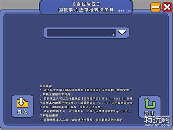 泰拉瑞亚国服手机版存档转换器是一款非常好用的转换器,可以转化游戏里面很多的道具等等,但是这个转换器的使用比较困难,很多玩家不知道该怎么使用,下面小编带来泰拉瑞亚国服手机版存档转换器使用方法,赶紧来看看吧。