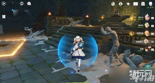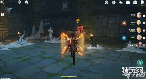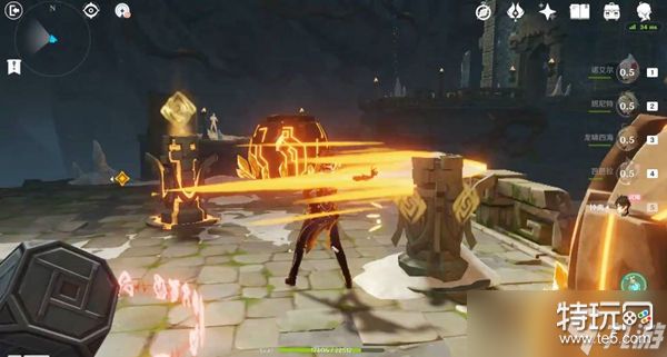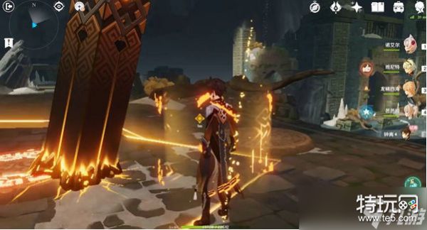 7、发现三个石柱机关,用岩元素去攻打解锁。
