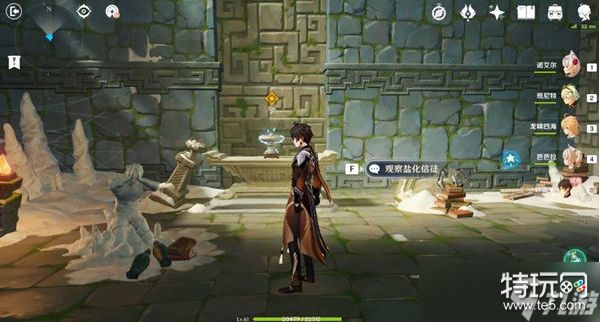 1、进入盐中之谜秘境,将角色切换成为钟离。