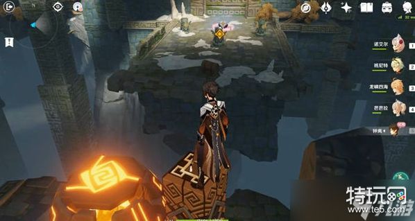 3、找到第一个机关,让钟离的柱子去镇压石头,自己则站在另一块石头上。