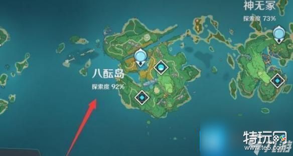 打开地图,在稻妻找到八酝岛。