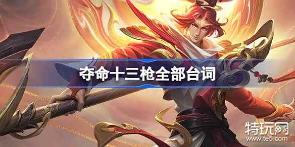 以上就是关于夺命十三枪全部台词的全部内容了,希望能为各位玩家们带来帮助,想要了解更多游戏攻略及资讯请持续关注特玩游戏。