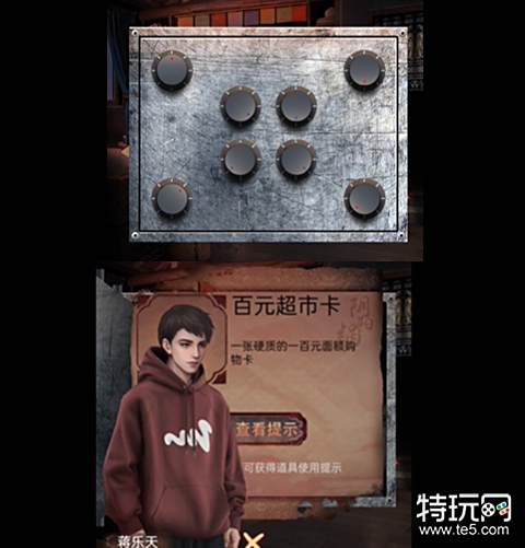 13、根据三张图片碎片和电视中的碎片,按照线索解开客厅地下的保险箱,获得一张百元超市卡。