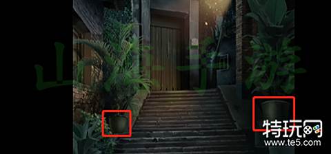 1、我们来到第二个场景,点击两侧的盆栽,获得两个滑块和两个石块。