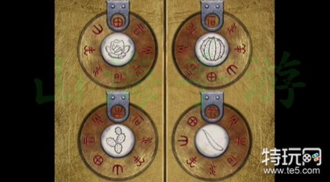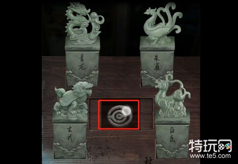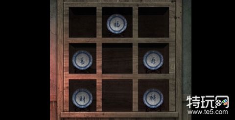12、然后进入商场,在前台这里按照图示顺序放置四个印章,获得玉扣。
