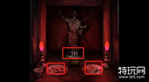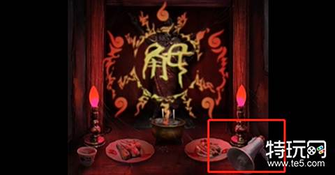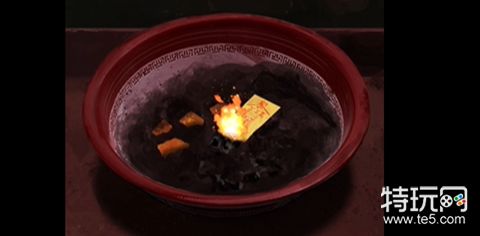 17、最后将猪剪纸拓印和其他的两张剪纸一起放入地下室的火锅中,随后根据火锅中显示的六艺顺序,使用火柴依次点燃外院中鼎里面的香。