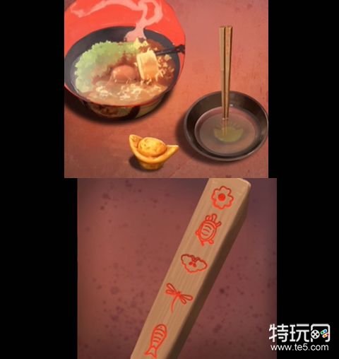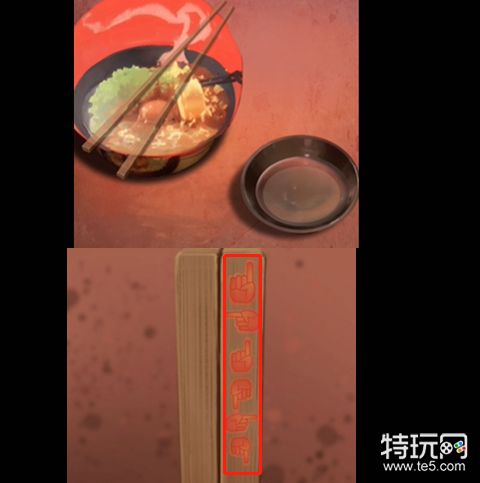 15、使用茶碗在浴室洗手台上接满一碗冷水,然后放到客厅泡面桌子上,点击筷子出现一组顺序,记住顺序方向。