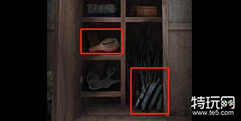 7、再根据桌子上的信息,找到柜子上锁的线索,然后如图所示打开,获得火柴和香。