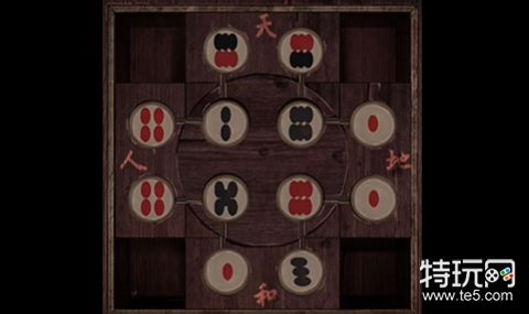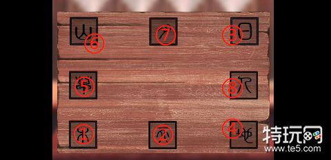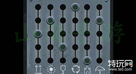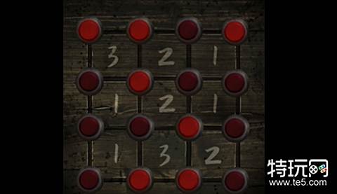 7、在有磨刀石的房间中将生锈的剪刀打磨好,然后剪开用绳子绑着的门,进去打开箱子上的机关获得酒瓶,机关正确解法: