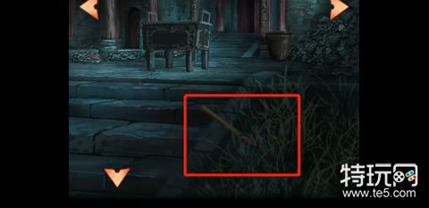 2、使用镰刀,将门口左右两边的石狮子清理干净,然后在右边狮子获得线索,根据门口柱子上的线索,完成左边狮子的机关并获得黑勾玉。