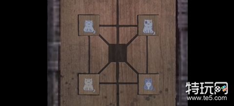 3、回到娱乐室,点击冰箱上层门前跟门后的猫咪图案,然后根据图案解开娱乐室左下角凳子上的机关盒子,获得照片。