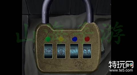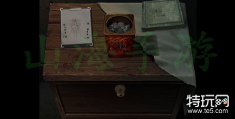 3、回到门外进到深巷中,一个铁网门用获得的钥匙打开,按照图示打开桌子上的机关盒,获得香烟和打火机。