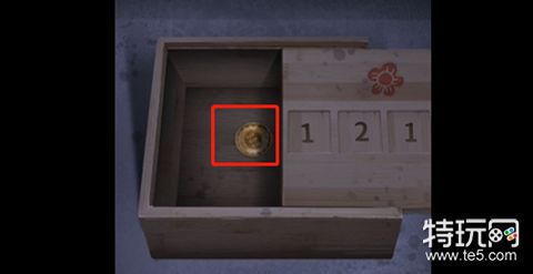 4、接着打开冰箱下层,镜子上的密码就是下层机关盒子的密码,输入密码1215获得一个硬币。
