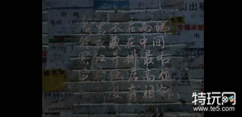 4、前进道新的场景之后,在墙壁上可以看到很多小广告,使用除胶喷雾清理掉,获得线索。
