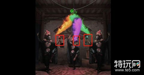 26、随后按照图示方法将三色莲台分别放到不同变脸人的手中,获得将军印,就能开启被封的房间了。