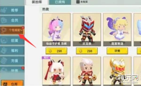 2、然后我们点击左边的个性搭配,找到想要赠送的皮肤。