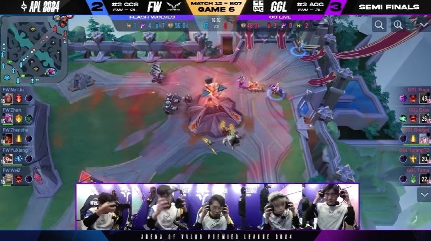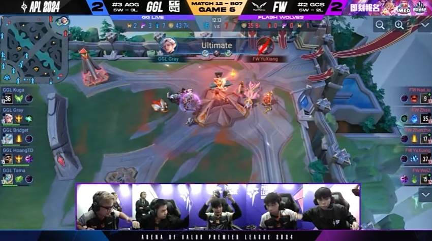 《Garena传说对决》APL四强赛激烈进行,越南GGLive(GGL)与台湾Flash Wolves(FW)激战七局,最终FW以4:3惊险逆转,晋级冠军战,明日将对阵BanMei Gaming(BMG),上演GCS内战。比赛中,双方展现高水平较量,MVP频现,为观众带来精彩对决。