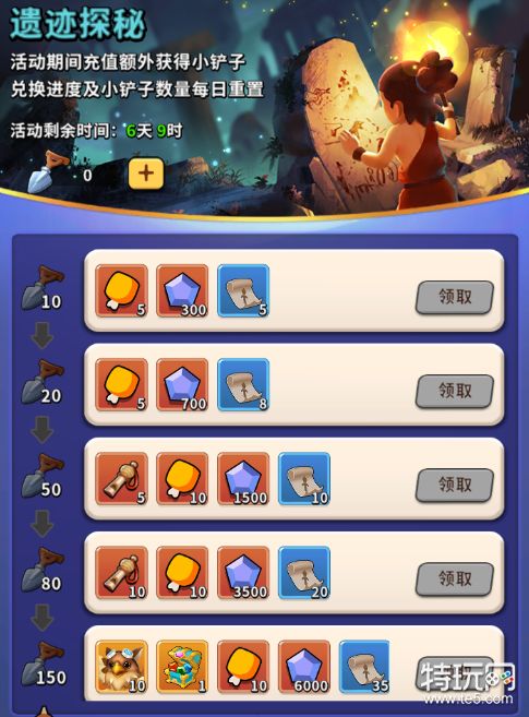 ●每天充值可以获取小铲子,小铲子到达一定数量可以领取对应奖励,兑换数量及小铲子数量每天重置