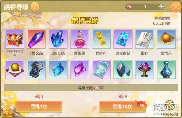 珠珮鹊桥从此断,遥天空恨碧云高。活动开启后,大侠可以在奇珍阁购买鹊桥花进行寻缘,每次寻缘都将获得丰厚奖励,同时累计寻缘达到一定数量还能获得额外的奖励。