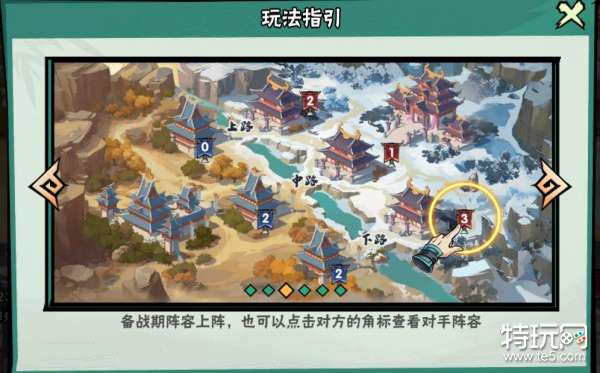 战中:匹配后少侠就可部署自己的出战阵容啦,部署的时间为周二早6:00至24:00,一共有三路,少侠可以任选一路进行出战布阵,布阵前建议先查看对手阵容进行针对哦~知己知彼,百战不殆