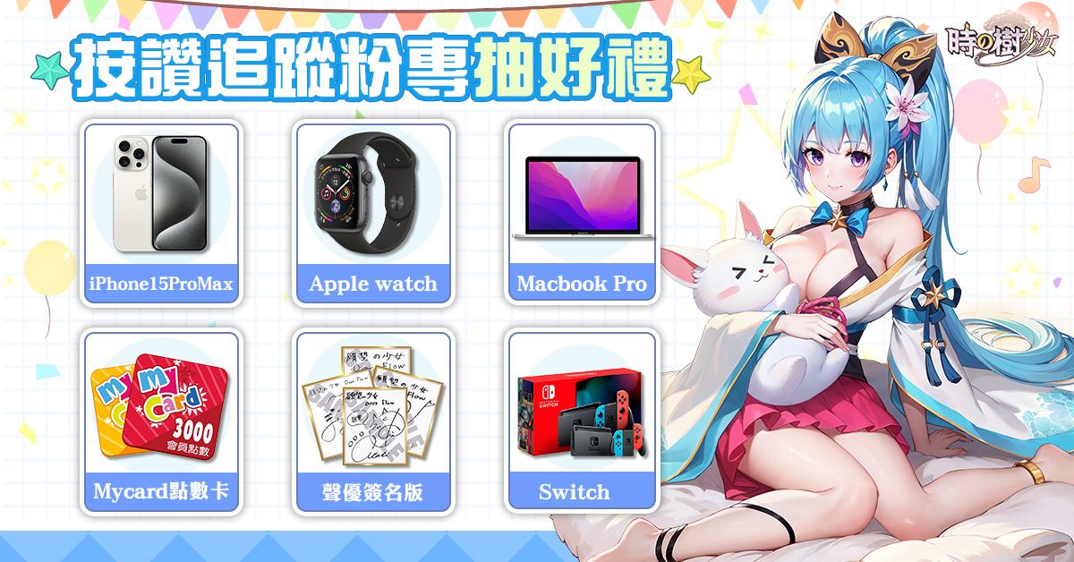搜索关注官方粉丝团,参与官方粉丝专页互动分享活动,就有机会赢取知名声优亲笔签名、 iPhone 15 Pro Max、Macbook Pro、Switch、千元点数卡 等实体好礼。