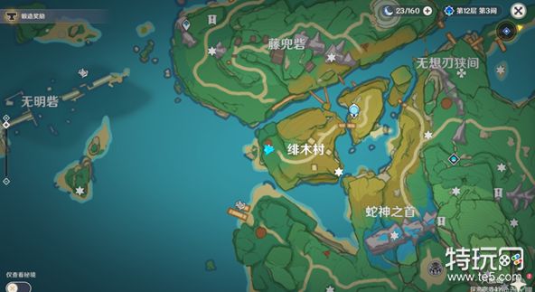 原神遗落的文本位置遗落的文本一:在无想刃狭间图的右侧位置;