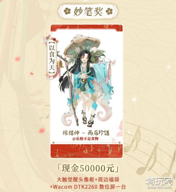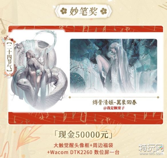 奖品:现金50000元,大触觉醒头像框+周边福袋+Wacom DTK2260 数位屏一台