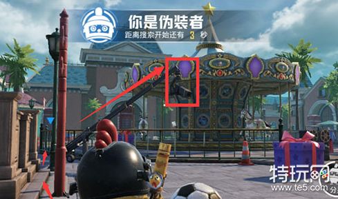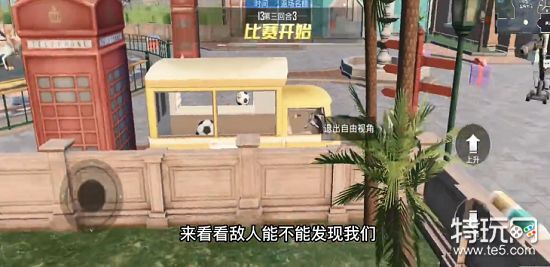 在广场那里会有一个黄色的餐车,玩家可以变身成小物件,然后跳到餐车中,这个位置十分隐蔽即使有排查区也扫不到,不过不要分身,不然太引人注意了。