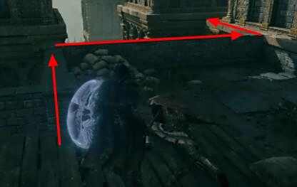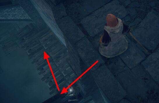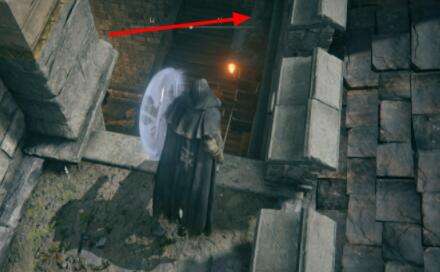 4、通过墙壁上的缺口进入塔楼后跳到下层