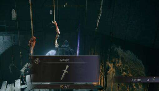 5.来到房间左侧的平台后在角落的尸体上找到一把石剑钥匙
