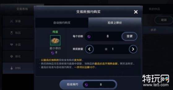 (想要的道具如果没有,就点预约拍卖,之后上线会通知你)