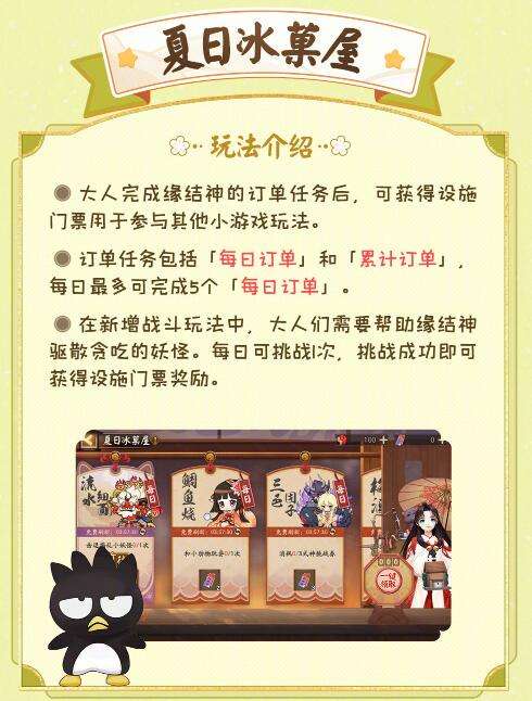 《阴阳师》夏日游园会活动玩法攻略2022,本次与三丽鸥联动的夏日游园会活动玩法分为夏日冰菓屋、百面归一、百鬼夜戏、挖土寻宝、达摩叠叠乐,具体玩法和小编往下看。