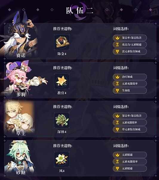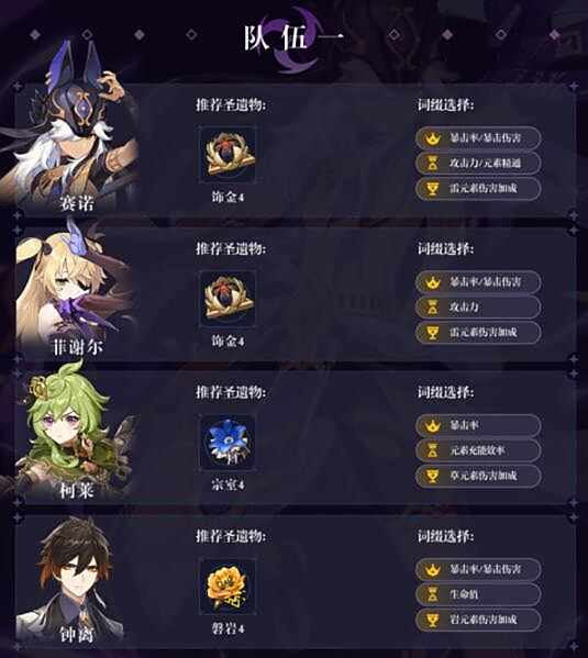 皇女是副C顺便凑双雷缓解赛诺充能,可以使用其他后台雷替换
