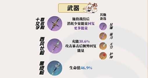 ②西风长枪:充能30.6%,攻击暴击后额外回复能量